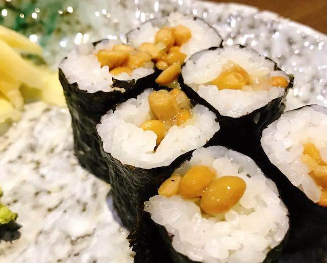 The fermented soybeans are soft and brown in color, and they are covered with a slimy mucous-like matter. It has a pretty strong flavor like that of stinking socks. I agree that eating the fermented soybeans calls for an acquired taste, hence not everyone can try this traditional sushi roll. However, if you are an adventurous eater, give it a try and your body will thank you for all the health benefits it contains.